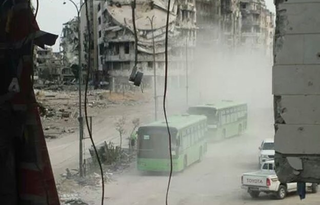 «Τρία λεωφορεία, στα οποία επιβαίνει ένας αντιπρόσωπος του ΟΗΕ, αναχώρησαν γύρω στις 10:00 (τοπική ώρα και ώρα Ελλάδας) από την Παλιά Πόλη μεταφέροντας 120 πρόσωπα, τραυματίες, αμάχους και μαχητές», δήλωσε προς το Γαλλικό Πρακτορείο ο διαπραγματευτής των ανταρτών Αμπούλ Χαρέθ.