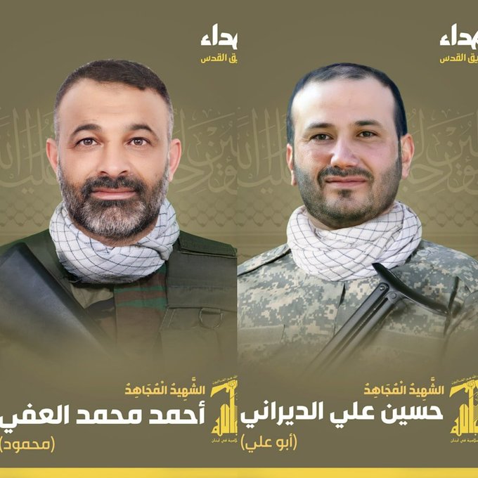 Αργότερα σήμερα η Χεζμπολάχ ανακοίνωσε ότι σκοτώθηκαν δύο μαχητές της χωρίς να επισημαίνει πού και πότε.