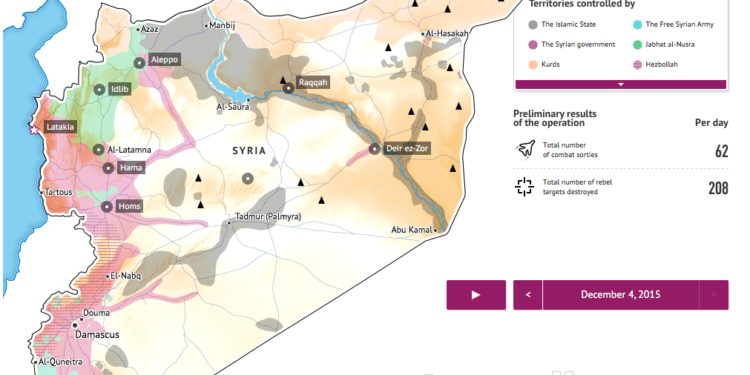 Η Ρωσία απο τη μεριά της, κατάφερε να πετύχει πολλα περισσότερα απο τις 30 Σεπτεμβρίου όταν ξεκίνησε τις δικές της αεροπορικές επιχειρήσεις στη Συρία. “Το ISIS και η al-Nusra συρρικνώνονται εξαιτίας της εμπλοκής της Μόσχας, δήλωσε ο Άσαντ στην εφημερίδα Sunday Times. Προσέθεσε ότι η αντιτρομοκρατική προσπάθεια της Ρωσίας έχει εγκριθεί απο την Δαμασκό, ενώ η συριακή κυβέρνηση δεν παρέχει άδεια στις ΗΠΑ προκειμένου να ξεκινήσουν επιχειρήσεις στα εδάφη της Συρίας.