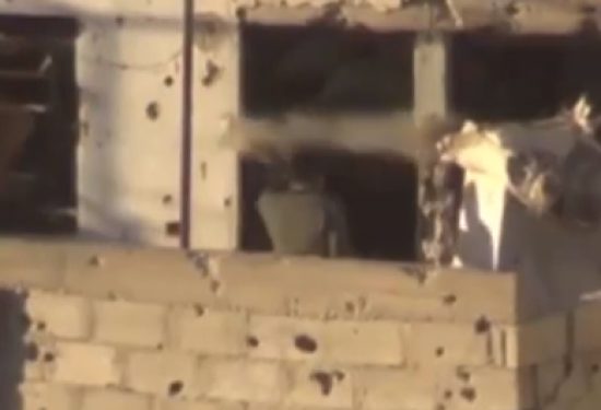 Ο ελέυθερος σκοπευτής στοχεύει και εκ θαύματος δεν σκοτώνει τον Σύρο στρατιώτη! Ο στρατιώτης αφου καταλαβαίνει οτι μολις γλύτωσε τον σίγουρο θάνατο μόνο για λίγα χιλιοστά καταφεύγει σε ένα, ετοιμόρροπο πλέον, κτίριο.