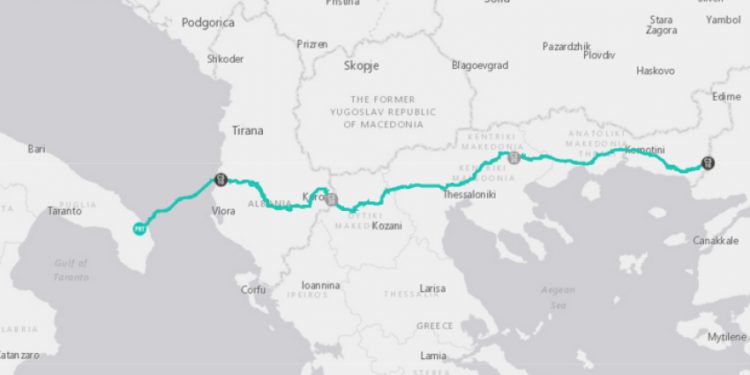 Ο αγωγός TAP θα μεταφέρει φυσικό αέριο από το γιγαντιαίο κοίτασμα Shah Deniz II στο Αζερμπαϊτζάν προς την Ευρώπη. Ο μήκους περίπου 878 χλμ. αγωγός θα συνδεθεί με τον αγωγό Trans Anatolian Pipeline (TANAP) στους Κήπους στα ελληνοτουρκικά σύνορα, και θα διασχίζει την Ελλάδα, την Αλβανία και την Αδριατική θάλασσα, προτού εξέλθει στην ξηρά στη Nότιo Ιταλία.