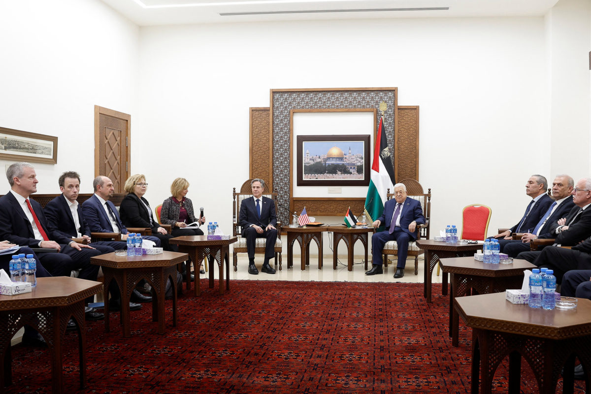 Ο Μπλίνκεν συναντήθηκε με τον Μαχμούντ Αμπάς στην Ραμάλα της Δυτικής Όχθης, την ντε φάκτο παλαιστινιακή πρωτεύουσα, κατά την δεύτερη επίσκεψή του στην περιοχή από τις 7 Οκτωβρίου που η ένοπλη παλαιστινιακή οργάνωση Χαμάς εξαπέλυσε αιφνιδιαστική επίθεση στο νότιο Ισραήλ σκοτώνοντας 1.400 ανθρώπους και συλλαμβάνοντας ομήρους περισσότερους από 240.