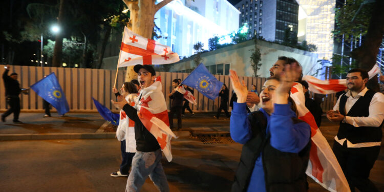 🇬🇪 As first #Georgia exit polls are slowly trickling in, ruling Georgian Dream party supporters already celebrating in the streets of Tbilisi. Both sides are currently claiming victory. pic.twitter.com/HAfq2PjtVU
