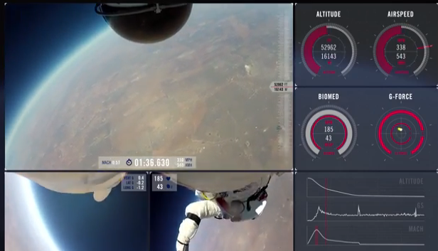 Όπως μεταδίδεται, κρίνοντας από τα βιομετρικά στοιχεία που παρουσιάζονται στο βίντεο, η πιο ανησυχητική στιγμή για τον Μπαουμγκάρτνερ ήταν όχι η πτήση με υπερηχητική ταχύτητα, αλλά το άνοιγμα του αλεξιπτώτου.