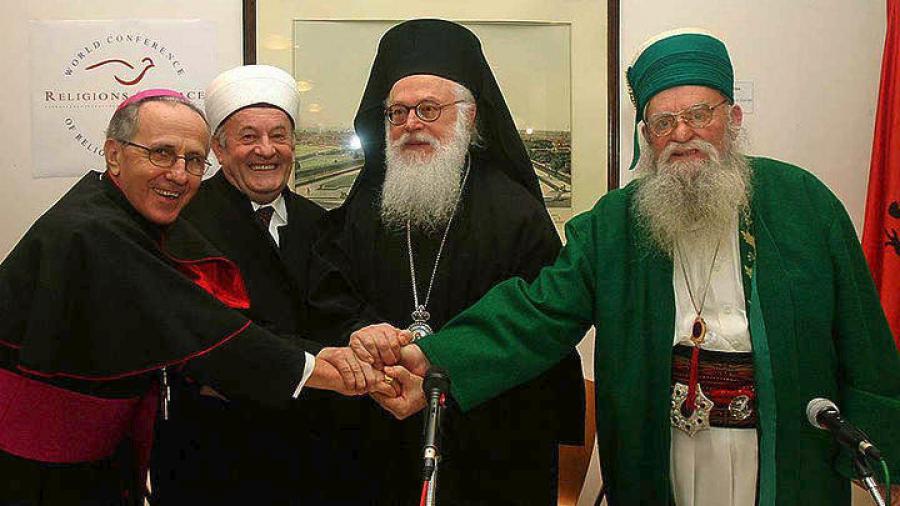 Αυτή η αξία και αυτός ο μοναδικός, ιστορικός και εθνικός πλούτος του λαού μας κληρονομήθηκε και διαφυλάχθηκε, καλλιεργήθηκε και μεταβιβάστηκε από γενιά σε γενιά, χάρη στο μόχθο, τις θυσίες, τις προσπάθειες, τη φροντίδα και το υψηλό αίσθημα ευθύνης και καθήκοντος προς την ισχυρή πνευματική πίστη των ηγετών των θρησκευτικών κοινοτήτων των Αλβανών.