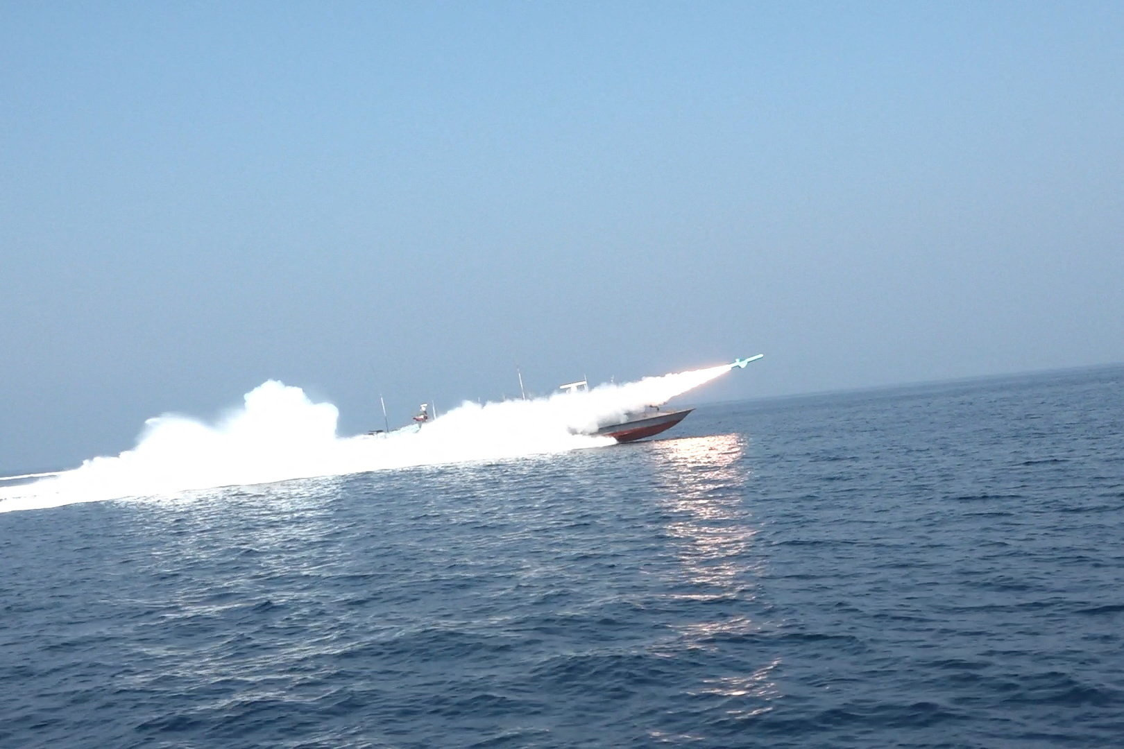 Πλάνα που μεταδόθηκαν σε κρατικά ιρανικά μέσα ενημέρωσης έδειχναν πυραύλους cruise να εκτοξεύονται από φορτηγά κατά μήκος της ακτής και από σκάφη στη θάλασσα.