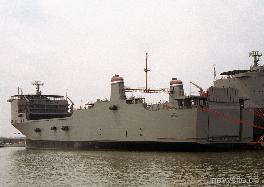 Πρόκειται για το πλοίο MV Cape Ray το οποίο ανήκει στην Διεύθυνση Ναυτιλίας της αμερικανικής κυβέρνησης. Το πλοίο κατασκευάστηκε το 1977 και παραδώθηκε στην Σαουδική Αραβία, μεταπωλήθηκε στις ΗΠΑ το 1993 όπου και εγιναν οι κατάλληλες μετρατοπές για την χρήση του ως πολεμικό πλοιο. Εχει μήκος 197,5 μέτρα, πλάτος 32 μέτρα, εκτόπισμα 35.350 τόνους.