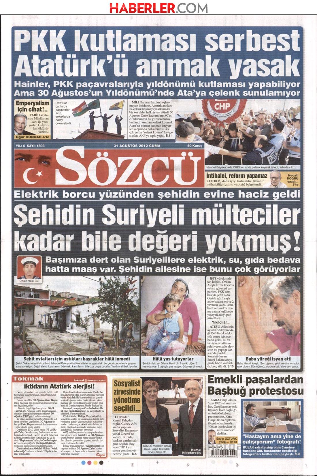 «Επιτρέπουν τις γιορτές στο PKK αλλά απαγορεύουν τη μνήμη του Κεμάλ Ατατούρκ» είναι ο τίτλος της Sözcü η οποία αναφέρει πως στη χθεσινή εθνική γιορτή οι αστυνομικοί απαγόρευαν στο πλήθος να καταθέσει στεφάνι για να μνημονεύσει τον Κεμάλ Ατατούρκ και κατηγορεί ευθέως την κυβέρνηση Ερντογάν.