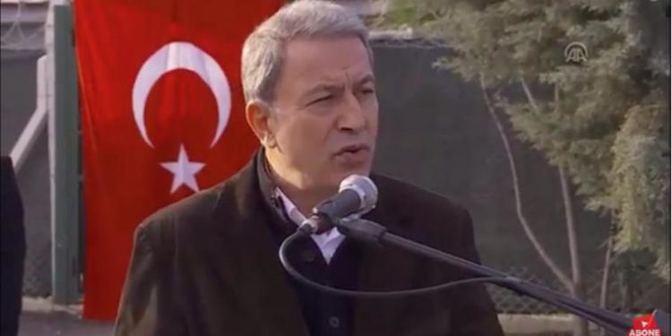 Όπως μεταδίδει για τον Ελεύθερο τύπο ο Μανώλης Κωστίδης, ο Τούρκος υπουργός κατά τη διάρκεια της επιθεώρησής του στις μονάδες της Τουρκίας στα σύνορα με τη Συρία δήλωσε πως η Τουρκία κάνει όλα τα απαραίτητα βήματα για να υπερασπιστεί τα δικαιώματά της στη «Γαλάζια Πατρίδα».