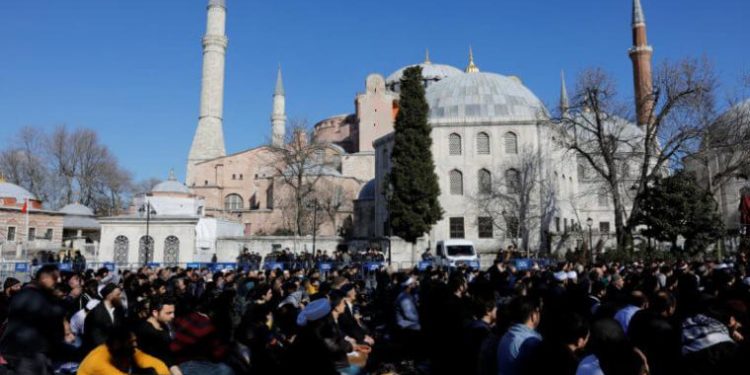 Μια προκλητική διαδήλωση πραγματοποίησαν Τούρκοι έξω από την Αγιά Σοφιά, ζητώντας να γίνει τζαμί. Πρόκειται όπως φαίνεται για ακραίους ισλαμιστές, οι οποίοι συγκεντρώθηκαν έξω από την Αγιά Σοφιά στην Κωνσταντινούπολη, ζητώντας να σπάσουν οι αλυσίδες και να ανοίξει η Αγιά Σοφιά.