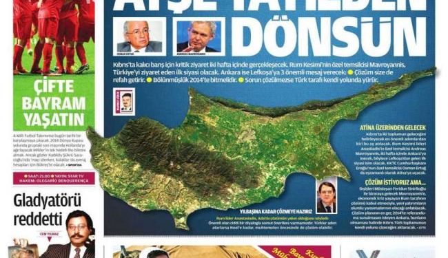 Τη μεγάλη κινητικότητα που αναμένεται να ξεκινήσει τις επόμενες εβδομάδες αποκαλύπτει η εφημερίδα Akşam. Σύμφωνα με την τουρκική εφημερίδα σε δυο εβδομάδες ο εκπρόσωπος του Νίκου Αναστασιάδη για το Κυπριακό Ανδρέας Μαυρογιάννης, θα επισκεφθεί την Άγκυρα. Θα είναι ο πρώτος υψηλόβαθμος εκπρόσωπος της κυβέρνησης της Κυπριακής Δημοκρατίας που θα βρεθεί στην τουρκική πρωτεύουσα. Ο Μαυρογιάννης σύμφωνα πάντα με την Αkşam θα συναντηθεί με τον γενικό γραμματέας του Υπουργείου Εξωτερικών της Τουρκίας Φεριντούν Σινιρλίογλου. Η Άγκυρα θα ζητήσει την επίλυση του Κυπριακού εντός του 2014. Ο Σινιρλίογλου θα ζητήσει την πραγματοποίηση δημοψηφίσματος σε σχέδιο λύσης και θα τονίσει πως σε περίπτωση [ου το σχέδιο επίλυσης γίνει δεκτό οι επενδύσεις που θα φτάσουν στην Κύπρο θα είναι τεράστιες.