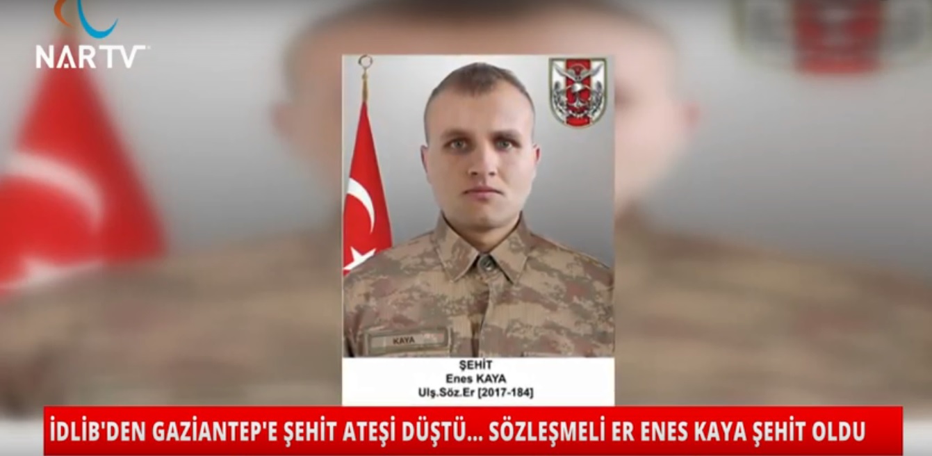 Σύμφωνα με το τουρκικό παρατηρητήριο στη Συρία, ο «μάρτυρας Er Enes Kaya έχασε τη ζωή του σε μάχες στην Ιντλίμπ».