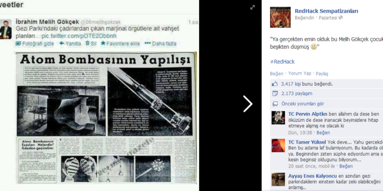 Οι Redhack δεν άφησαν ασχολίαστη την “μπαρούφα” του δημάρχου και σχολίασαν: “σιγουρευτήκαμε πως ο Μελίχ Γκιοκτσέκ όταν ήταν μικρός έπεσε από την κούνια”.