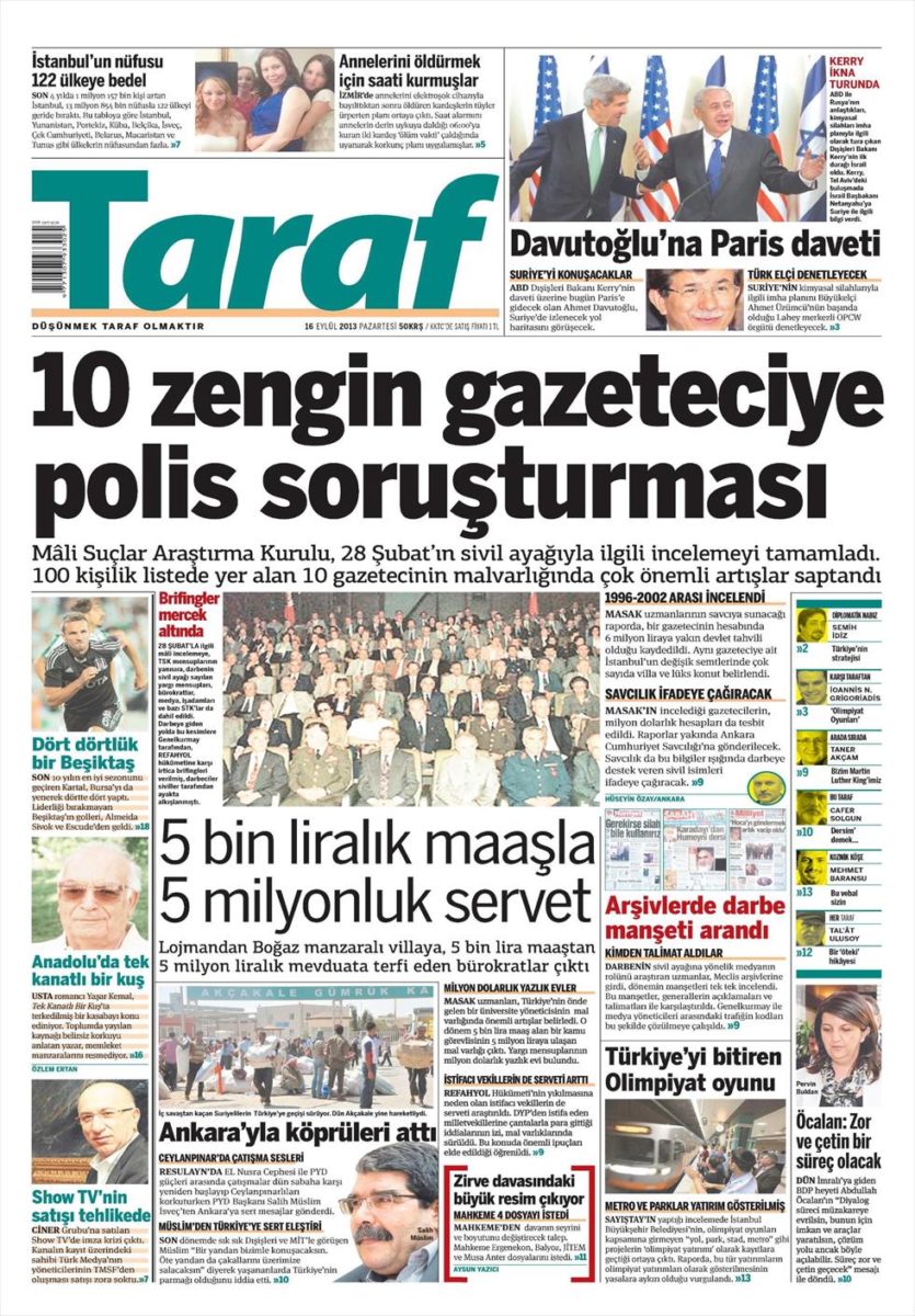 Σύμφωνα με την εφημερίδα “Taraf” με τίτλο « έρευνα της αστυνομίας σε 10 πλούσιους δημοσιογράφους» , το σώμα δίωξης οικονομικού εγκλήματος της γειτονικής χώρας έχει συντάξει μια ειδική λίστα που παρουσιάζει 100 άτομα που σχετίζονται με την εποχή της 28ης Φεβρουαρίου.