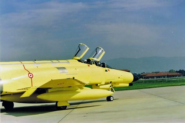 Το κίτρινο αστάρι κάτω από την “ξηλωμένη μπογιά” στο υπό εκσυγχρονισμό F-4E, είναι μια παράξενη εικόνα.