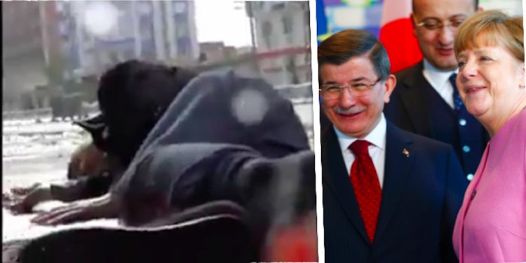Κούρδοι με λευκές σημαίες ,συνοδεύουν τους νεκρούς τους . Κρατούν λευκές σημαίες για να δείξουν στους Τούρκους στρατιώτες και στρατοχωροφύλακες ότι είναι άοπλοι. Ότι δεν είναι…τρομοκράτες. Κι εκείνοι απαντούν με καταιγισμό πυρών κατά της νεκρικής πομπής!