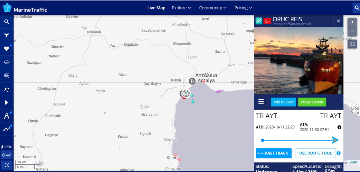 Το Orus Reis επέστρεψε από τα ξημερώματα της Δευτέρας (30.11.2020) στην Αττάλεια, αφού η Τουρκία αποφάσισε, αυτή τη φορά, να μην ανανεώσει την παράνομη NAVTEX της.