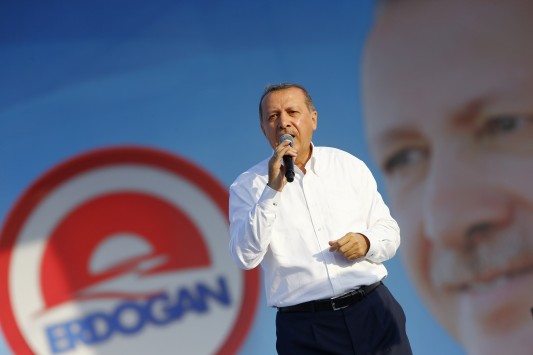 «Δεν ήρθαμε εδώ για να γίνουμε αφέντες του έθνους αλλά για να το υπηρετήσουμε», συνέχισε. Ο Ερντογάν εξαπέλυσε επίθεση στον βασικό αντίπαλό του στις εκλογές, τον υποψήφιο της αντιπολίτευσης Εκμελεντίν Ιχσάνογλου, τον πρώην πρόεδρο του Οργανισμού Ισλαμικής Συνεργασίας, και διαβεβαίωσε ότι μια «νέα Τουρκία» θα κερδίσει τις εκλογές της 10ης Αυγούστου. »Αυτοαποκαλείται καθηγητής», είπε για τον Ιχσάνογλου. «Μιλάει τρεις γλώσσες. Μήπως ψάχνετε για διερμηνέα; Αν αναζητούσαμε διερμηνέα, υπάρχουν πολλοί που μιλούν τουλάχιστον πέντε γλώσσες! Εγώ μπορώ να κάνω τη δουλειά με τον δικό μου διερμηνέα», ειρωνεύτηκε, προσθέτοντας: «Αυτός ο άνθρωπος (ο Ιχσάνογλου) δεν ξέρει απολύτως τίποτα από πολιτική». Αναφερόμενος στην κατάσταση στη Μέση Ανατολή, ο Ερντογάν κατηγόρησε το Ισραήλ ότι σκοτώνει σκοπίμως Παλαιστίνιες μητέρες και προειδοποίησε ότι «θα πνιγεί στο αίμα που χύνει». Για άλλη μία φορά μάλιστα συνέκρινε τις ενέργειες της ισραηλινής κυβέρνησης με τις πράξεις του Χίτλερ, δηλώσεις για τις οποίες ο Ισραηλινός ομόλογός του Μπενιαμίν Νετανιάχου τον έχει κατηγορήσει για αντισημιτισμό. »Όπως ο Χίτλερ, που επιδίωκε τη δημιουργία μιας φυλής χωρίς ελαττώματα, το Ισραήλ κυνηγάει τον ίδιο στόχο. Σκοτώνουν γυναίκες για να μην γεννήσουν Παλαιστίνιους. Σκοτώνουν μωρά για να μην μεγαλώσουν. Σκοτώνουν άνδρες για να μην υπερασπιστούν τη χώρα τους. Θα πνιγούν στο αίμα που χύνουν» είπε ο Ερντογάν. Το μεγαλύτερο ερωτηματικό αυτών των εκλογών, των πρώτων που θα διεξαχθούν με καθολική ψηφοφορία στην Τουρκία, φαίνεται πως είναι εάν ο Ερντογάν θα κερδίσει από τον πρώτο γύρο ή εάν θα χρειαστεί να διεξαχθεί και δεύτερος γύρος, στις 24 Αυγούστου.