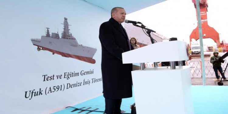 Στο πλαίσιο εκδήλωσης για τα εγκαίνιας της νέας κορβέτας του τουρκικού Πολεμικού Ναυτικού ‘Ορίζοντας’ (Ufuk Α-591) στα ναυπηγεία της Τούζλα, στην ευρύτερη περιοχή της Κωνσταντινούπολης, ο Τούρκος Πρόεδρος Ρετζέπ Ταγίπ Ερντογάν έστειλε “μήνυμα” για την ανάπτυξη και το μέλλον της αμυντικής βιομηχανίας της χώρας του εν μέσω εξελίξεων και απειλών τόσο στην Συρία όσο και στην Ανατολική Μεσόγειο και το Αιγαίο.