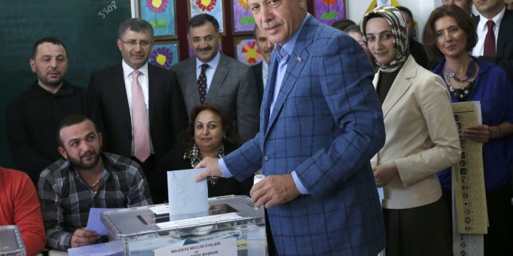 Ο πρωθυπουργός της Τουρκίας Ρετζέπ Ταγίπ Ερντογάν ψήφισε νωρίς σήμερα το απόγευμα στην Κωνσταντινούπολη διαβεβαιώνοντας πως «το έθνος θα πει σήμερα την αλήθεια» κατά τις δημοτικές εκλογές, οι οποίες έχουν αποφασιστική σημασία για το μέλλον του ιδίου επικεφαλής της χώρας, ενώ την ίδια ώρα ο απολογισμός από τις ένοπλες συγκρούσεις μεταξύ υποψηφίων για θέσεις αρχηγών χωριών αυξανόταν σε οκτώ νεκρούς, μετά το θάνατο δύο τραυματιών στο νοσοκομείο.