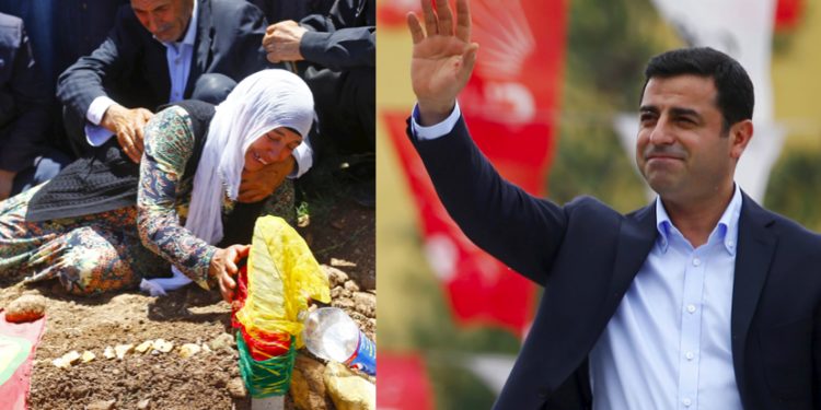 Ο κ. Ντεμίρτας είπε ότι συνεργάτες του του ανέφεραν ότι αναζητήθηκε από τον κ. Ερντογάν και τον Πρωθυπουργό Νταβούτογλου και στη συνέχεια είπε: «Είδα με τα μάτια μου ότι εκατοντάδες παιδιά εκεί συμπεριλαμβανομένων και των 2 κοριτσιών μου παρ’ ολίγο να πεθάνουν. Μικρά παιδιά και μωρά έφθασαν στο σημείο να μην μπορούν να αναπνεύσουν από τα δακρυγόνα της αστυνομίας. Οι δικοί μου σωματοφύλακες μετέφεραν άτομο του οποίου το σώμα είχε διαμεληθεί και μου είπαν ότι πέθανε καθ’ οδόν. Κατ’ αρχήν πήρα την πληροφορία ότι υπήρχαν 100 τραυματίες. Τότε βγήκα και έκανα δήλωση για σύνεση. Δεν έδωσα καμία πληροφορία για τραυματίες και νεκρούς για να μην αυξήσω τον πανικό. Την ίδια ώρα ο Πρόεδρος Ερντογάν μιλούσε σε προεκλογική συγκέντρωσή του στο Εσκίσεχιρ και πάλι έκανε επίθεση εναντίον μας. Σ’ εκείνη την ομιλία του δεν είπε ούτε συλλυπητήρια, ούτε περαστικά ούτε προέβη σε κάποια διατύπωση λύπης. Ο Πρόεδρος της χώρας μίλησε επί μια ώρα στο Εσκίσεχιρ και δεν έκανε ούτε κουβέντα αναφορικά με τη βάναυση επιχείρηση. Ο ίδιος είπε ότι προσπάθησε να επικοινωνήσει μαζί μου αλλά το θέμα δεν ήταν να επικοινωνήσει μαζί μου αλλά να επικοινωνήσει με τον εκεί λαό για να ζητήσει συγνώμη από το λαό που υπέστη σφαγή. Ας μεταβεί στο Ντιάρμπακιρ. Δεν είναι Πρόεδρος των 77 εκ? Ας μεταβεί εκεί όπου έγινε η σφαγή κι ας αφήσει λουλούδια. Το θέμα δεν είμαι εγώ είναι ο λαός. Οφείλουν μια συγνώμη στο λαό για το γεγονός ότι άσκησαν εκστρατεία με ψευδείς κατηγορίες και μας μετέτρεψαν σε στόχο μιας τόσο εχθρικής επίθεσης. Οφείλουν να πουν συγνώ να ζητήσουν συγνώμη από τον τουρκικό λαό» μη σε όλη την Τουρκία. Θα πρέπει να ζητήσουν συγνώμη από την κοινωνία της Τουρκίας».