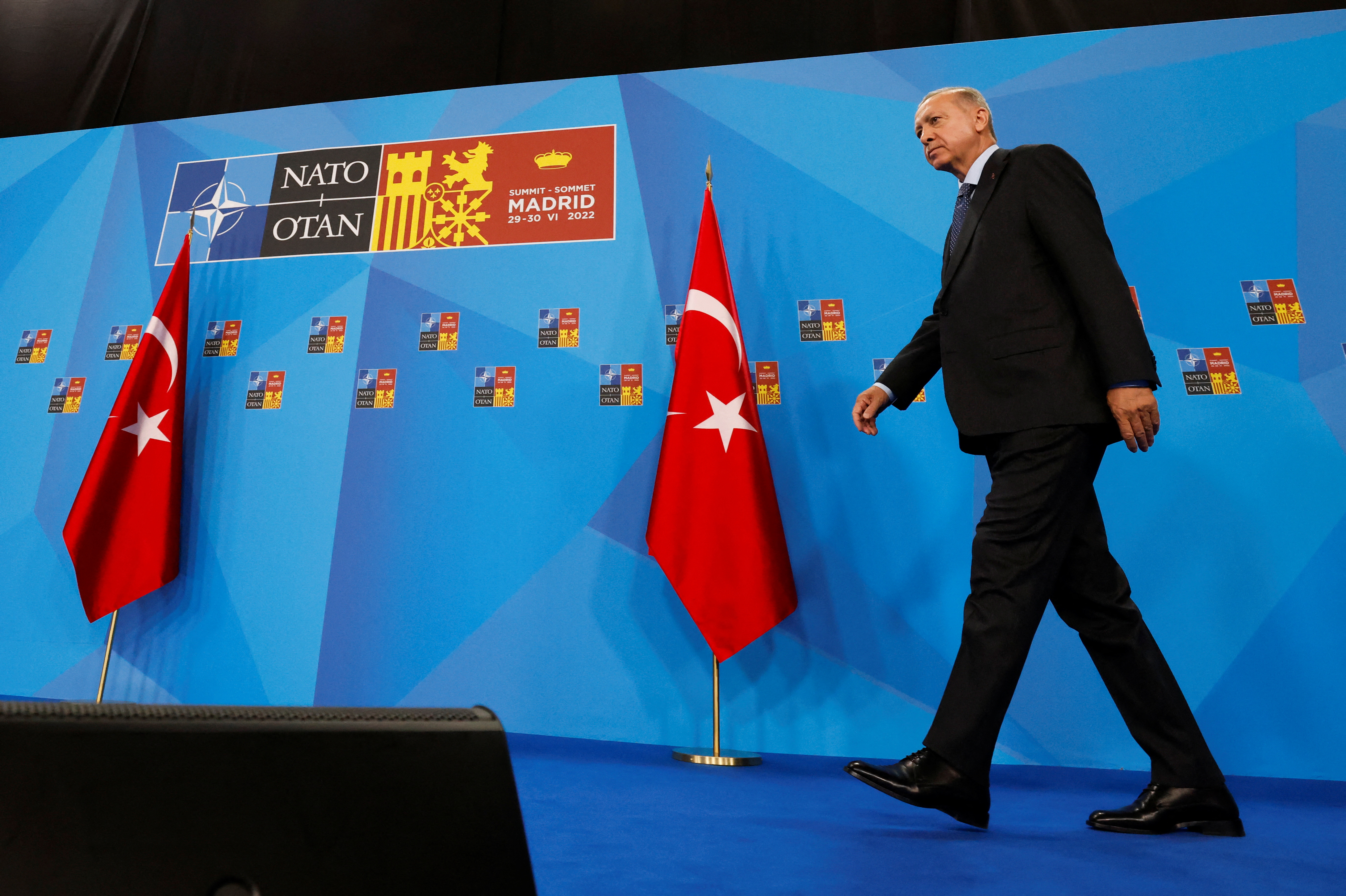 Ο πρόεδρος της Τουρκίας, Ρετζέπ Ταγίπ Ερντογάν, παραχώρησε σήμερα συνέντευξη τύπου μετά το τέλος της Συνόδου Κορυφής του NATO στη Μαδρίτη.