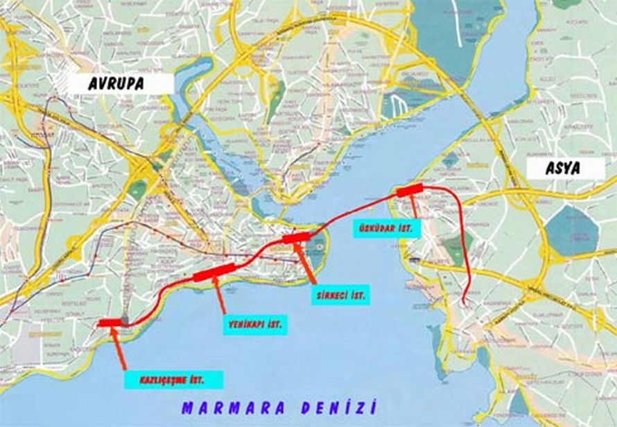Η απόσταση στις δυο όχθες του Βοσπόρου θα διανύεται σε μόλις 3.5 λεπτά. Το υποθαλάσσιο τούνελ είναι κατασκευασμένο από Ιάπωνες μηχανικο΄θα σε βάθος 60 μέτρων. Τουρκικές κατασκευαστικές εταιρείας συμμετείχαν στην κατασκευή του έργου υπο τις οδηγίες των Ιαπώνων