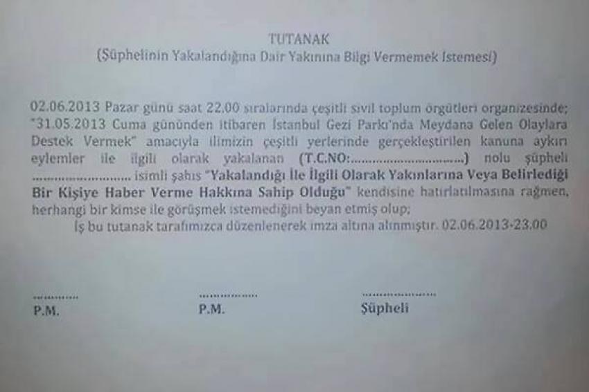 Την δήλωση αυτή δίνουν οι αστυνομικοί σ΄ όλους όσους συλλαμβάνουν και στην οποία λέει ότι “τους ενημερώσαμε ότι μπορούν να ενημερώσουν τους συγγενείς τους για την σύλληψή τους αλλά αρνήθηκαν”!!! Θέλουν να μην έχουν καμία επαφή ακόμη και με τους συγγενείς τους οι οποίοι από την άλλη τρομοκρατημένοι ψάχνουν να βρουν τους δικούς τους!