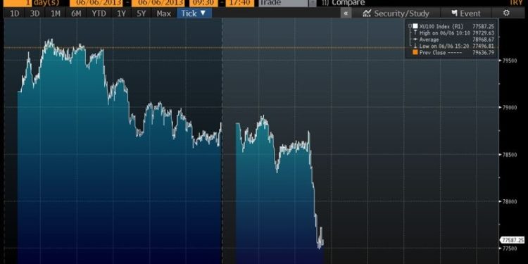 «Ο,τι και να γίνει εμείς το στρατώνα Τοπτσού θα τον χτίσουμε το πάρκο Γκεζί». Αυτή η δήλωση του Ερντογάν που έκανε την Πέμπτη στην Τυνησία, ήταν αρκετή για να προκαλέσει μεγάλη αναταραχή, οδηγώντας τον γενικό δείκτη εκείνη την ώρα σε κάθετη πτώση 6000 μονάδων δηλαδή περίπου 8%.