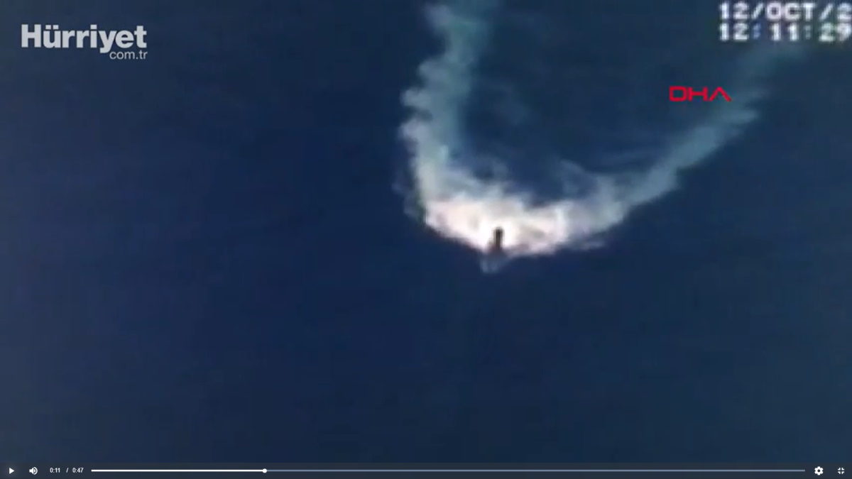 Όπως μετέδωσε και το Reuters, το Τουρκικό Πολεμικό Ναυτικό διέρρευσε ένα βίντεο που υποτίθεται πως δείχνει ελληνικό υποβρύχιο στην Ανατολική Μεσόγειο, το οποίο καταγράφουν δήθεν λεπτό προς λεπτό τα τουρκικά αεροσκάφη.