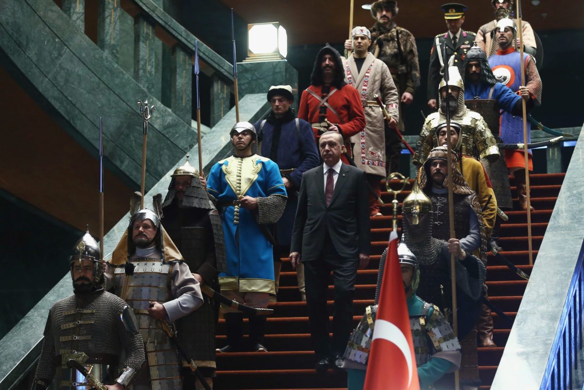 Όλα αυτά με…φόντο 16 φρουρούς της προεδρικής φρουράς ντυμένους με…πανοπλίες της οθωμανικής περιόδου που απλά επιβεβαίωναν το …διαζύγιο της Τουρκίας του Ερντογάν με την λογική .