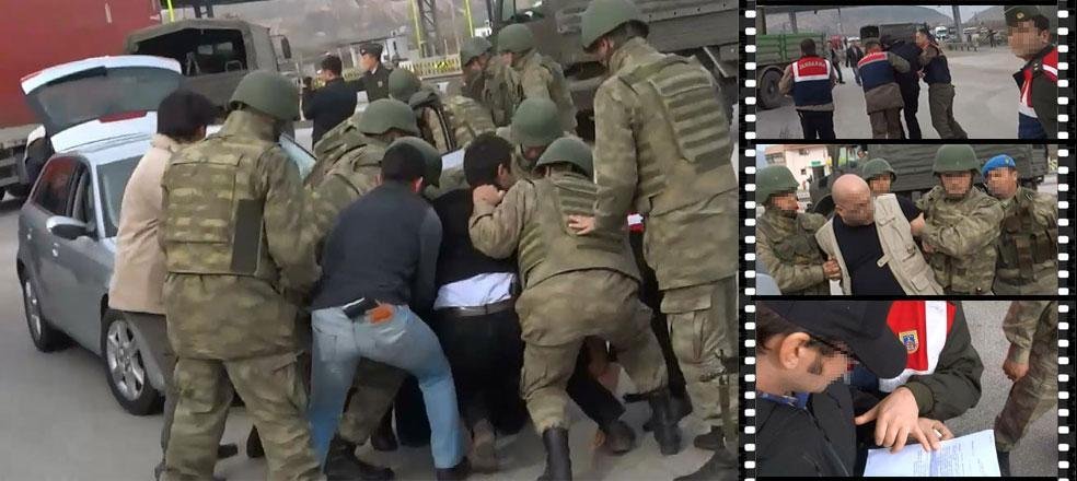 Φωτογραφίες πράκτορα της τουρκικής μυστικής υπηρεσίας πληροφοριών ΜΙΤ την ώρα που η Στρατοχωροφυλακή του βάζει χειροπέδες ως επιβάτη/οδηγό σε φορτηγό που πιάστηκε να μεταφέρει όπλα στους αντάρτες και τους τζιχαντιστές της Συρίας δήθεν ως …ανθρωπιστική βοήθεια, δημοσιεύει τουρκική εφημερίδα.