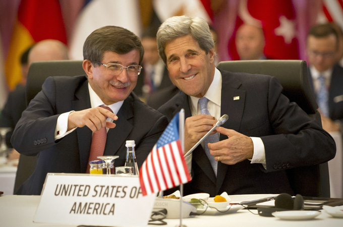 Ο Αχμέτ Νταβούτογλου στη Νέα Υόρκη συναντήθηκε με τον αμερικανό ομόλογο του Τζον Κέρι και το βασικό θέμα συζήτησης των δυο υπουργών Εξωτερικών ήταν οι εξελίξεις στη Συρία. Η συνάντηση ήταν διάρκειας μίας ώρας και ο Κέρι φαίνεται να εξήγησε στον Νταβούτογλου τις αποφάσεις των ΗΠΑ με τη Ρωσία σχετικά με τα χημικά όπλα της Δαμασκού. Ο τούρκος υπουργός προσπάθησε να δώσει τις διαστάσεις του θέματος των μεταναστών που φτάνουν από τη Συρία και συζήτησε τρόπου τερματισμού των μαχών στη χώρα αυτή. Η Άγκυρα δείχνει να μην είναι ικανοποιημένη από την αναβολή της στρατιωτικής επέμβασης εναντίον του καθεστώτος του Άσαντ και ζητά πιο άμεση παρέμβαση από την Ουάσιγκτον στο θέμα αυτό.