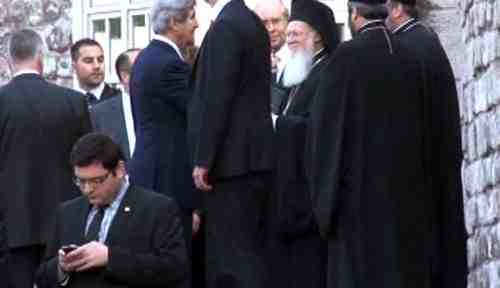 Ο Κέρι πριν την αποχώρηση του από την Κωνσταντινούπολη επισκέφθηκε το Φανάρι και είχε συνάντηση με τον Οικουμενικό Πατριάρχη Βαρθολομαίο.