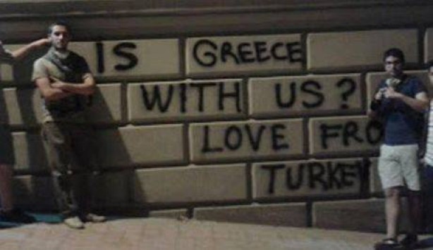 «Είναι η Ελλάδα μαζί μας; Με αγάπη από την Τουρκία» γράφει.