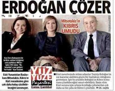 Ο Κωνσταντίνος Μητσοτάκης έδωσε συνέντευξη στην εφημερίδα Hürriyet που έχει τίτλο «ο Ερντογάν το λύνει» και η εφημερίδα γράει πως «ο πρωην πρωθυπουργός της Ελλάδος πιστεύει πως το Κυπριακό μπορεί να το λύσει ο Ερντογάν και αναφέρει πως το Κυπριακό είναι πιο εύκολο θέμα προς επίλυση παρά το Κουρδικό».