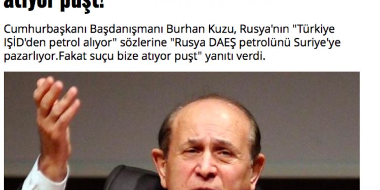 Ο εκ των κορυφαίων συμβούλων του Ερντογάν Μπουρχάν Κουζού απαντώντας στις κατηγορίες της Ρωσίας σύμφωνα με τις οποίες η Τουρκία αγοράζει πετρέλαιο από την ISIS”,αποκάλεσε τον Ρώσο Πρόεδρο ,π….η!!!