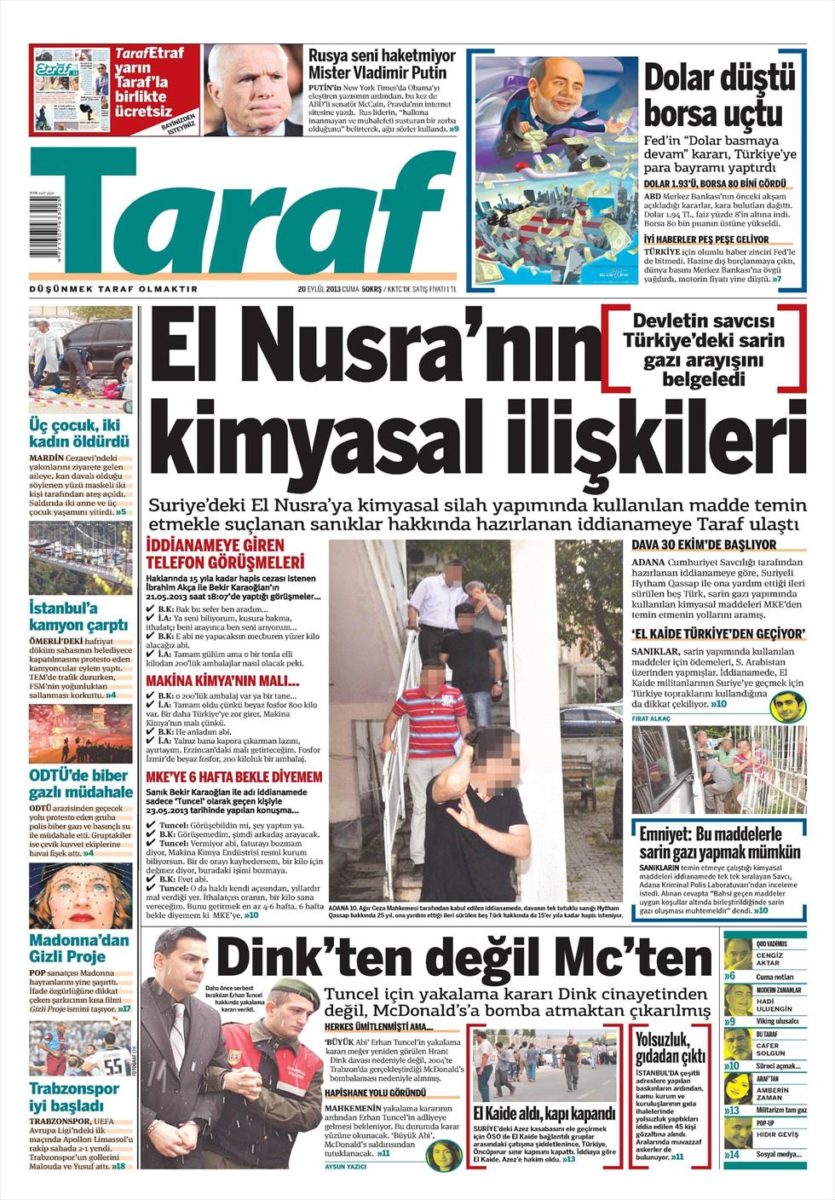 Την αποκάλυψη την κάνει η εφημερίδα Taraf που δημοσιεύει κατηγορητήριο του εισαγγελέα των Αδάνων, εναντίον 5 ανδρών που είχαν συλληφθεί στην Τουρκία για τρομοκρατική δράση. Ο ένας έχει υπηκοότητα Συρίας οι άλλοι είναι Τούρκοι.