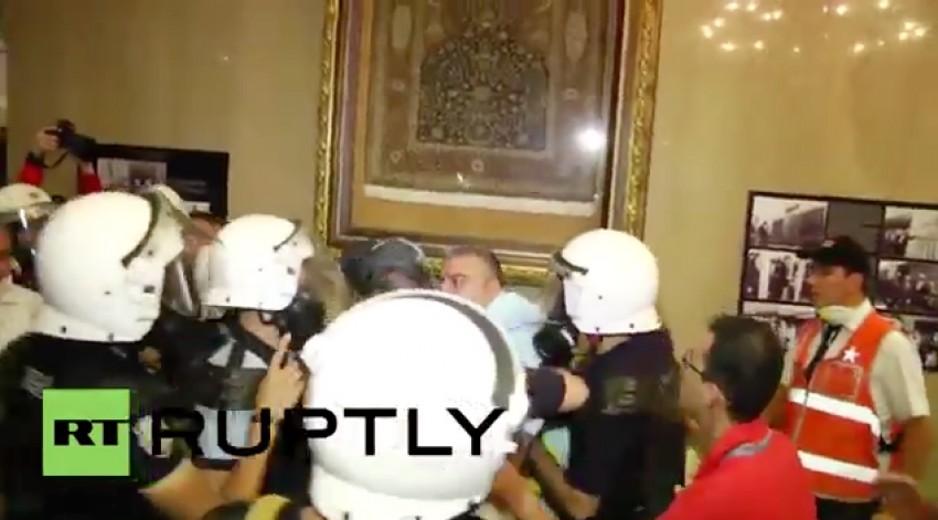 Το έλλειμμα ψυχραιμίας του καθεστώτος Ερντογάν είναι πλέον εμφανές και η επιλογή της βίας χωρίς όρια δείχνει να είναι η μοναδική επιλογή του. Στην Κωνσταντινούπολη οι αστυνομικές δυνάμεις έφθασαν στο σημείο να κυνηγούν διαδηλωτές ακόμη και μέσα στα πολυτελή ξενοδοχεία της Πόλης. Το βίντεο δείχνει διμοιρία ειδικών δυνάμεων της τουρκικής αστυνομίας να κάνει άνω κάτω το ξενοδοχείο Χίλτον για να συλλάβει διαδηλωτές!