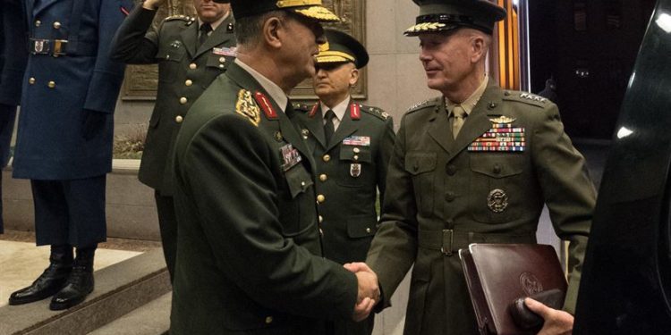 Ο Στρατηγός Joe Dunford (Τζόσεφ Ντάνφορντ), συναντήθηκε με τον Τούρκο ομόλογό του Στρατηγό Χουλουσί Ακάρ στην έδρα του Γενικού Επιτελείου στην Άγκυρα χθές.
