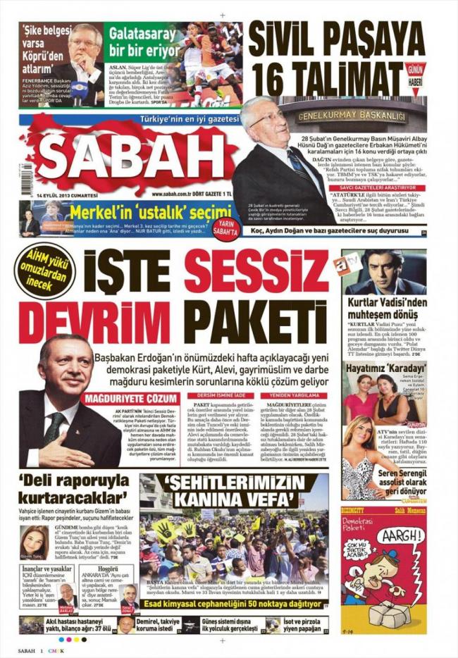 Η Sabah την προσπάθεια που ετοιμάζει η τουρκική κυβέρνηση την χαρακτηρίζει ως «δεύτερη σιωπηλή επανάσταση». Για την εφημερίδα η πρώτη επανάσταση ήταν η ανάληψη της εξουσίας απο το Κόμμα Δικαιοσύνης και Ανάπτυξης.