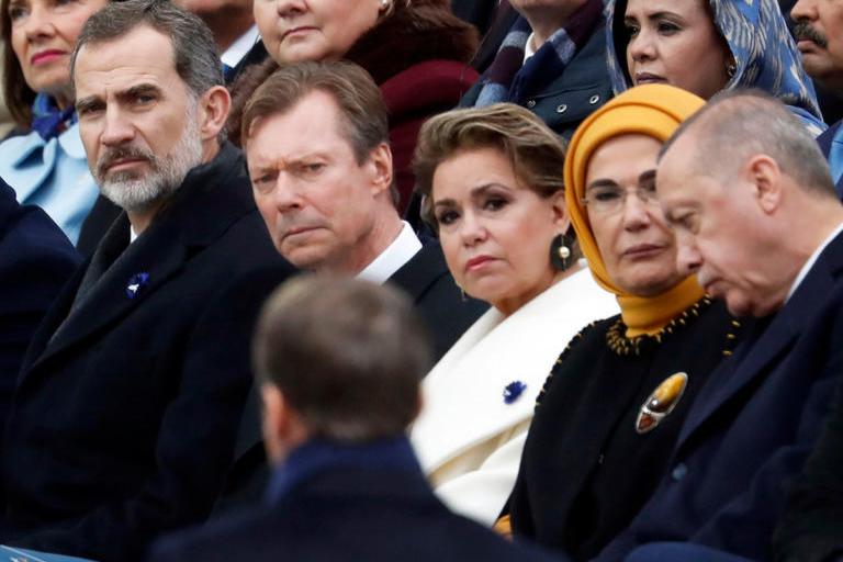 Μια από τις τελετές έγινε στην Αψίδα του Θριάμβου στην καρδιά του Παρισιού με τον Ταγίπ Ερντογάν να τον… κλέβει για λίγο και την σύζυγό του Εμινέ να είναι κι εκείνη λίγο γλαρωμένη στο πλευρό του. Ίσως λένε κάποιοι να προσπαθεί με τον δείκτη του δεξιού της χεριού να τον ξυπνήσει και να μην γίνουν εντελώς ρεζίλι. Ο Ερντογάν δεν είναι η πρώτη φορά που αποκοιμιέται σε δημόσιο χώρο. Το έχει κάνει και σε συνέντευξη Τύπου πέρυσι με τον Ουκρανό ομόλογό του Ποροσένκο και φέτος με τον Μολδαβό ομόλογό του, Ντοντον.