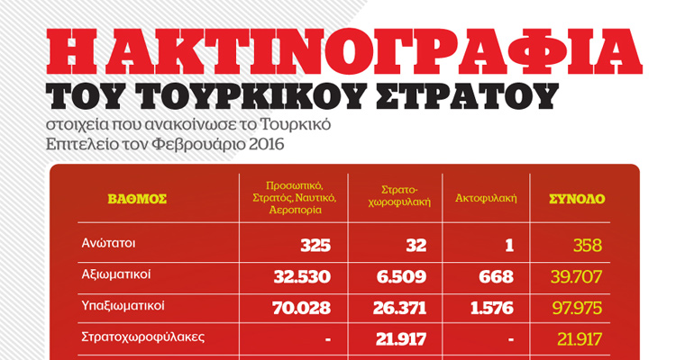 Δείτε στο Infographic του Onalert.gr αναλυτικά τους αριθμούς των Τουρκικών Ενόπλων Δυνάμεων.
