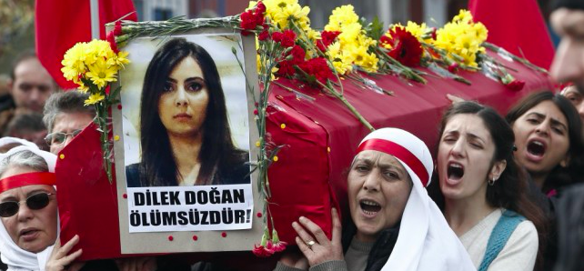 Η Ντιλέκ Ντογάν, που ανήκε στη μειονότητα των αλεβιτών, ηλικίας 25 ετών, άφησε την τελευταία της πνοή χθες το βράδυ στο νοσοκομείο όπου νοσηλευόταν αφού τραυματίστηκε κατά τη διάρκεια μιας επιχείρησης της αντιτρομοκρατικής υπηρεσίας της αστυνομίας στη συνοικία Σαριγιέρ στην Κωνσταντινούπολη την 18η Οκτωβρίου, έγραψαν τουρκικές εφημερίδες.