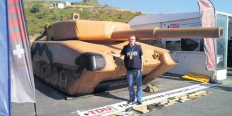 Αυτό το «μυστικό όπλο» αποκαλύφθηκε στην έκθεση Πολεμικής Βιομηχανίας που πραγματοποιήθηκε κατά την στρατιωτική άσκηση «ΕFES 2018», εκτέθηκε το επίπεδο που έχει φτάσει η αμυντική βιομηχανία στα πολεμικά οχήματα και συστήματα. Μεταξύ των εκθεμάτων που τράβηξε ιδιαίτερα την προσοχή ήταν και ένα φουσκωτό, άρμα μάχης.Το άρμα μάχης – «μακέτα» που είναι ένας «κλώνος» με το Μ-60 που χρησιμοποιείται από τον τουρκικό στρατό, χρησιμοποιείται στην εκπαίδευση.