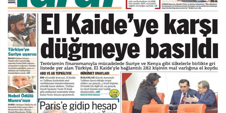 Η τουρκική εφημερίδα Taraf αποκαλύπτει το θέμα και έχει ως τίτλο «πατήθηκε το κουμπί εναντίον της Αλ Κάϊντα. Η εφημερίδα γράφει πως « η Τουρκία βρίσκονταν στη γκρίζα λίστα μαζί με το Σουδάν και την Κένυα ανάμεσα δηλαδή στις χώρες που δεν καταπολεμούν την Αλ Κάϊντα. Τώρα πατήθηκε το κουμπί στο θέμα αυτό».