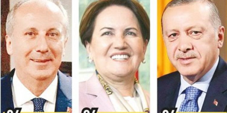 Σύμφωνα με το κείμενο του Ντενίζ Αϊχάν από την εφημερίδα Σοζτζού, στον 1ο γύρο ο Ερντογάν παίρνει 42%, ο υποψήφιος του CHP Μουχαρρέμ Ιντζέ παίρνει 21,91% και βρίσκεται στην 2η θέση, ενώ 3η βγαίνει η Μεράλ Αξενέρ του «Καλού Κόμματος» (IYI) με 21%.