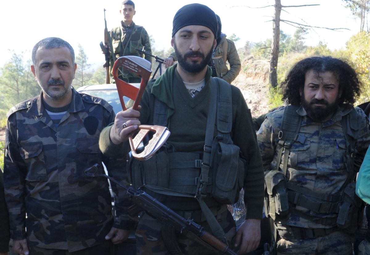 (Στην παραπάνω φωτογραφία του Reuters Τουρκμάνοι μαχητές με το αλεξίπτωτο του ρώσου πιλότου)