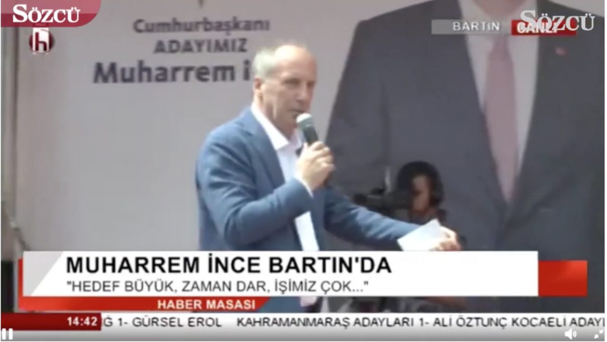 Εξαπέλυσε μύδρους εναντίον του κρατικού τηλεοπτικού δικτύου TRT για την υπερ-προβολή που παρέχει στον Ρετζέπ Ταγίπ Ερντογάν αλλά ένεκα της προεκλογικής καμπάνιας δεν απέφυγε την παροχολογία. Ο Μουχαρέμ Ιντζέ υποσχέθηκε κατώτατο μισθό 2200 τουρκικών λιρών, φθηνό αγροτικό πετρέλαιο στις 3 λίρες και μαθητικό επίδομα 1000 τουρκικών λιρών. Επιπλέον έταξε αυξησεις 3600 τουρκικών λιρών σε αστυνομικούς και δασκάλους.
