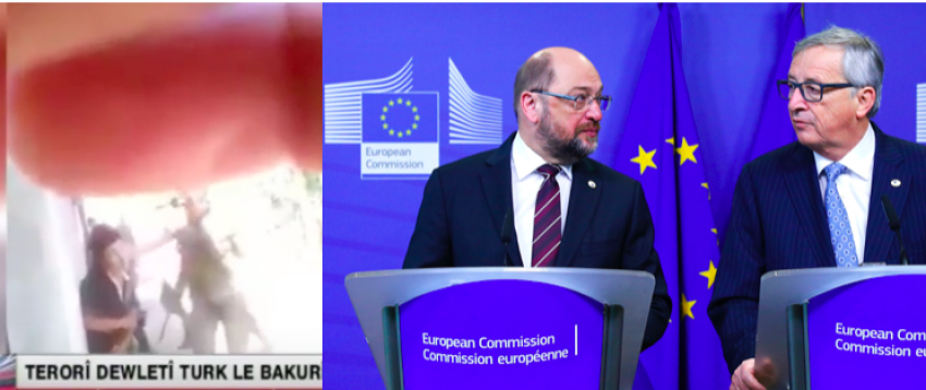 Η πολιτισμένη Ευρώπη ετοιμάζεται να υποδεχτεί το 2016 από τη μία στήνοντας παντού φράχτες και από την άλλη σιωπώντας προκλητικά στα όσα διαπράττει η Τουρκία αυτή τη περίοδο στις περιοχές των Κούρδων. Ένα ακόμη συγκλονιστικό βίντεο κάνει το γύρο του διαδικτύου. Τούρκος στρατιώτης χτυπά βάναυσα μικρό παιδί! Δεν έχουμε ακούσει κανένα πολιτισμένο Ευρωπαίο να έχει πει κουβέντα για όσα κάνει ο τουρκικός στρατός και οι δυνάμεις ασφαλείας στο Κουρδιστάν. Η Τουρκία που πριν λίγες ημέρες έπαιρνε…τα εύσημα των Ευρωπαίων για το πόσο καλά διαχειρίζεται το προσφυγικό!!! Και μαζί με τα εύσημα θα πάρει και 3 δις! Όλα αυτά για το κράτος που κάνει όσα θα δείτε στο βίντεο κι άλλα πολλά.